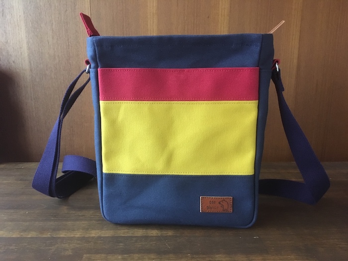 外ポケットがボーダー調で、色の組み合わせが楽しいポシェットです。